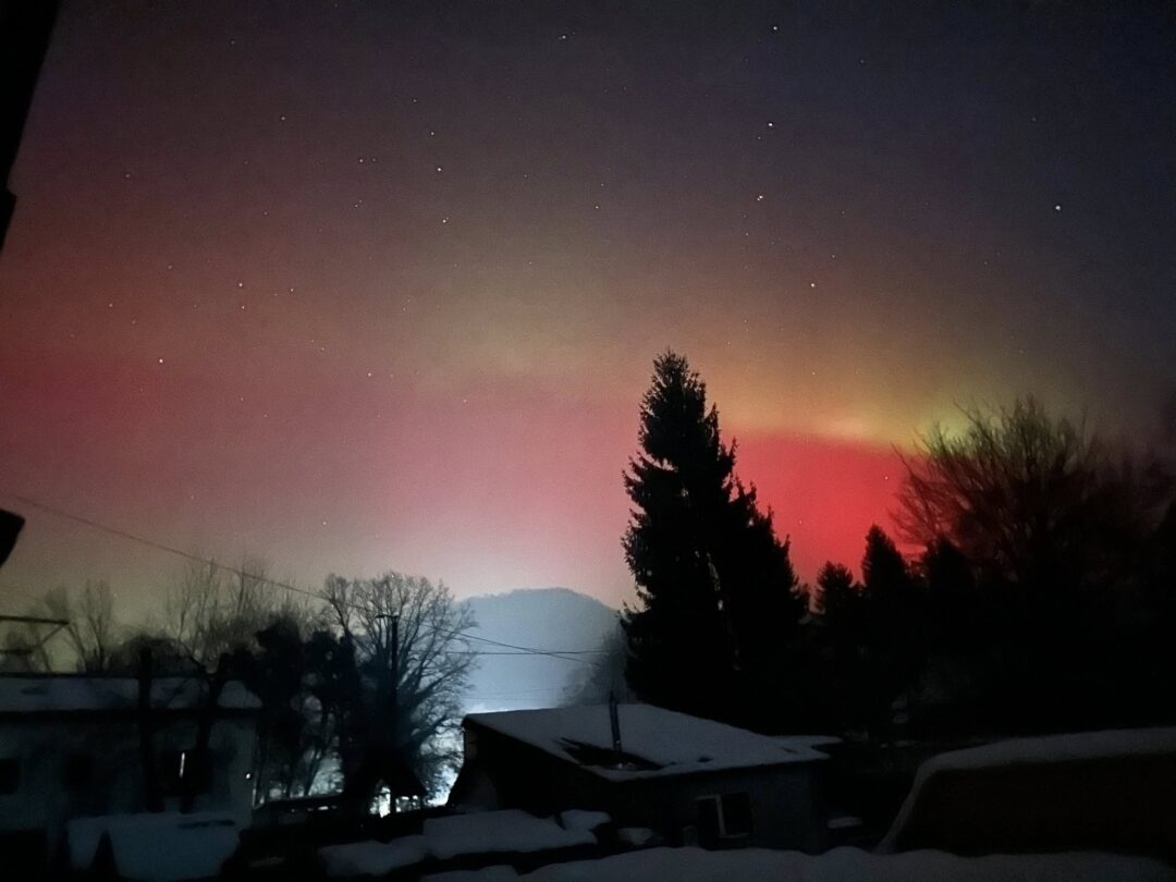Полярне сяйво для наших широт трапляється рідко. Воно виникає через підвищену сонячну активність та взаємодію заряджених частинок із магнітним полем Землі. За сприятливих умов його можна спостерігати навіть далеко за межами полярного кола.