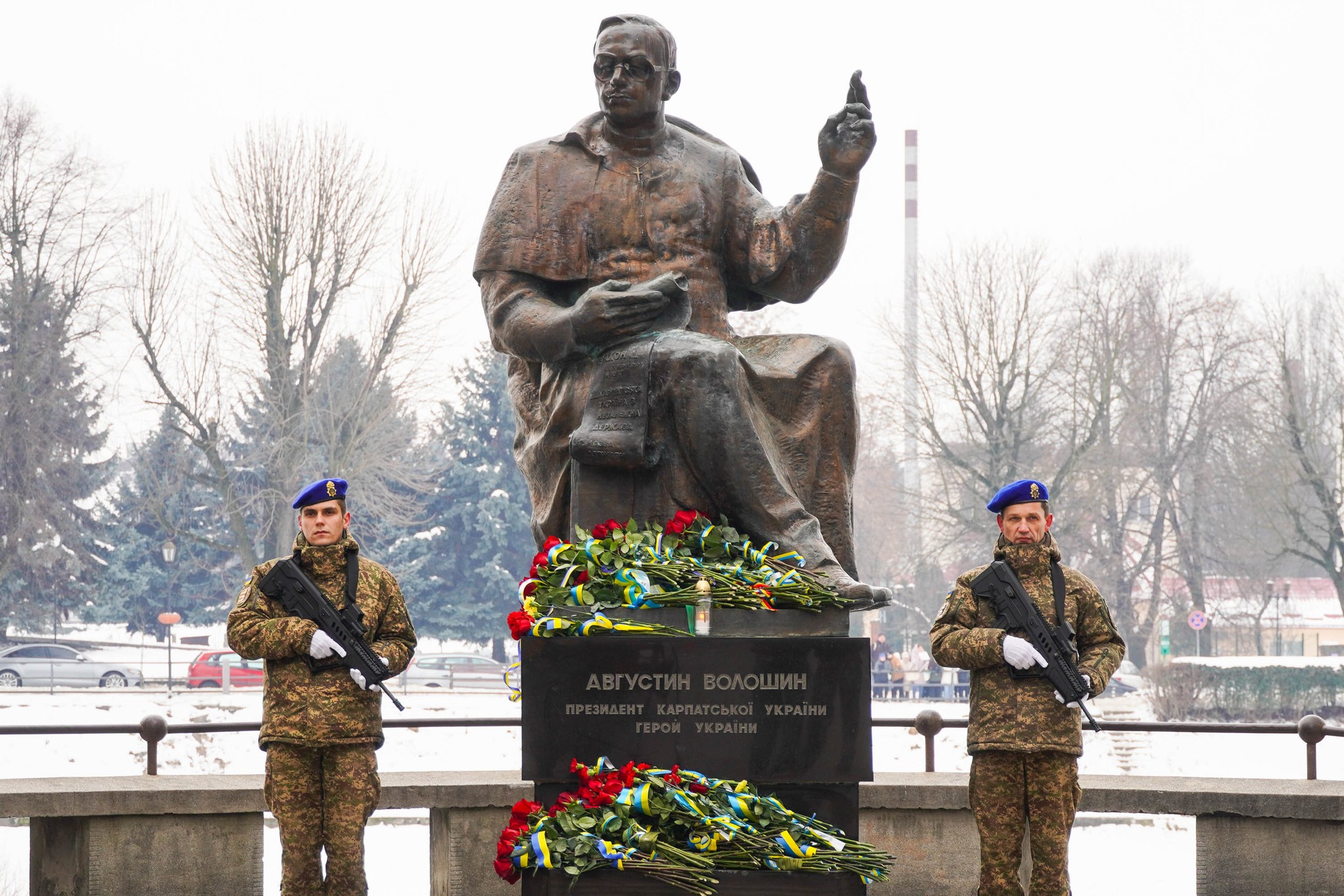 Із нагоди державного свята зранку в Ужгороді біля памʼятника Героя України, президента Карпатської України Августина Волошина зібралися керівництво області та міста, військові, духовенство, дипломати, містяни…