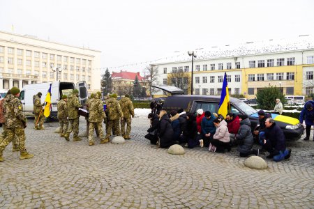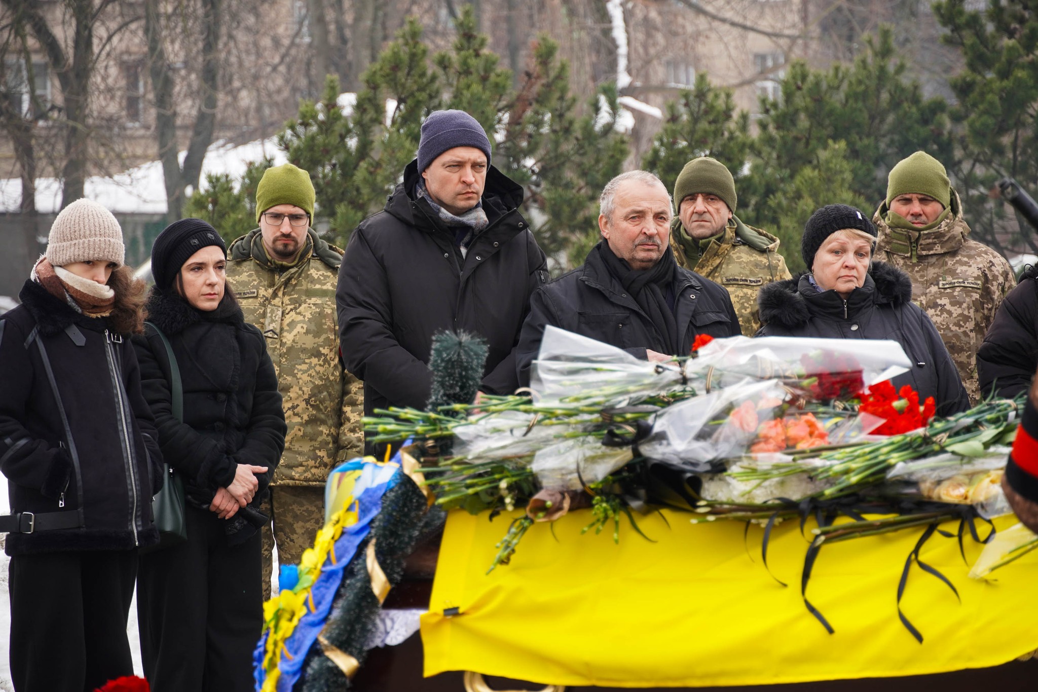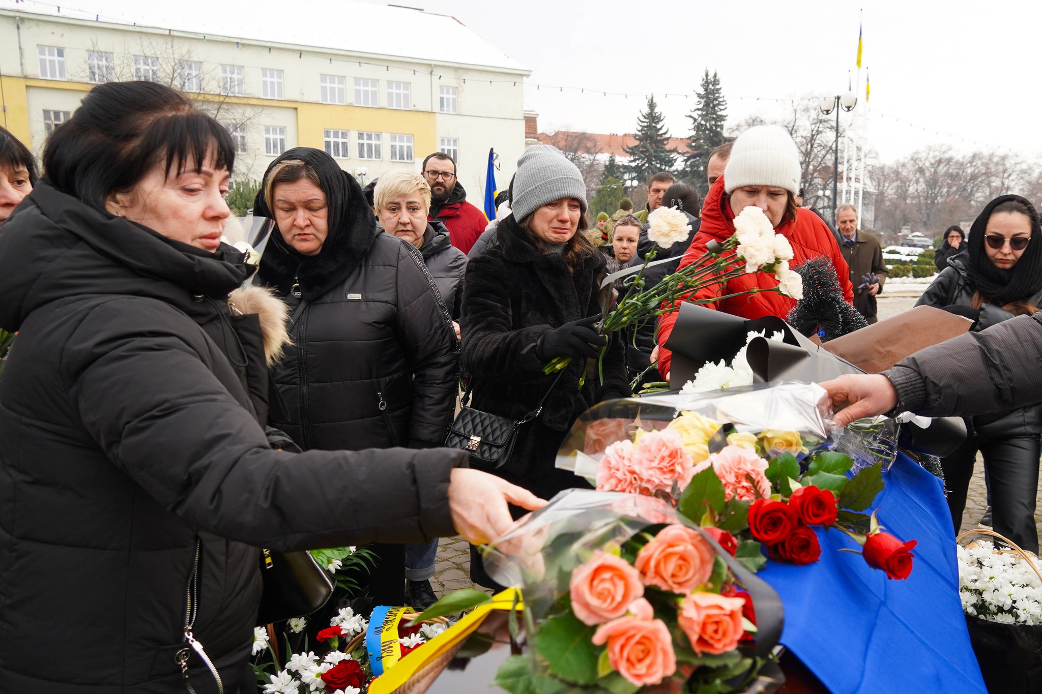 Чин похорону відбувся на площі Народній. Віддати шану полеглому прийшли рідні, друзі, військові, ужгородці, в.о. міського голови, керуючий справами виконкому Ужгородської міської ради Василь Пинзеник.