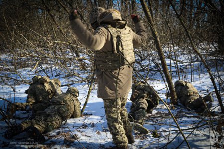 Далі відпрацювання бойового сценарію: висування на позиції, пересування складною місцевістю, дим, звуки стрілянини та дронів. Усе, щоб навчити діяти зібрано там, де панує хаос.
