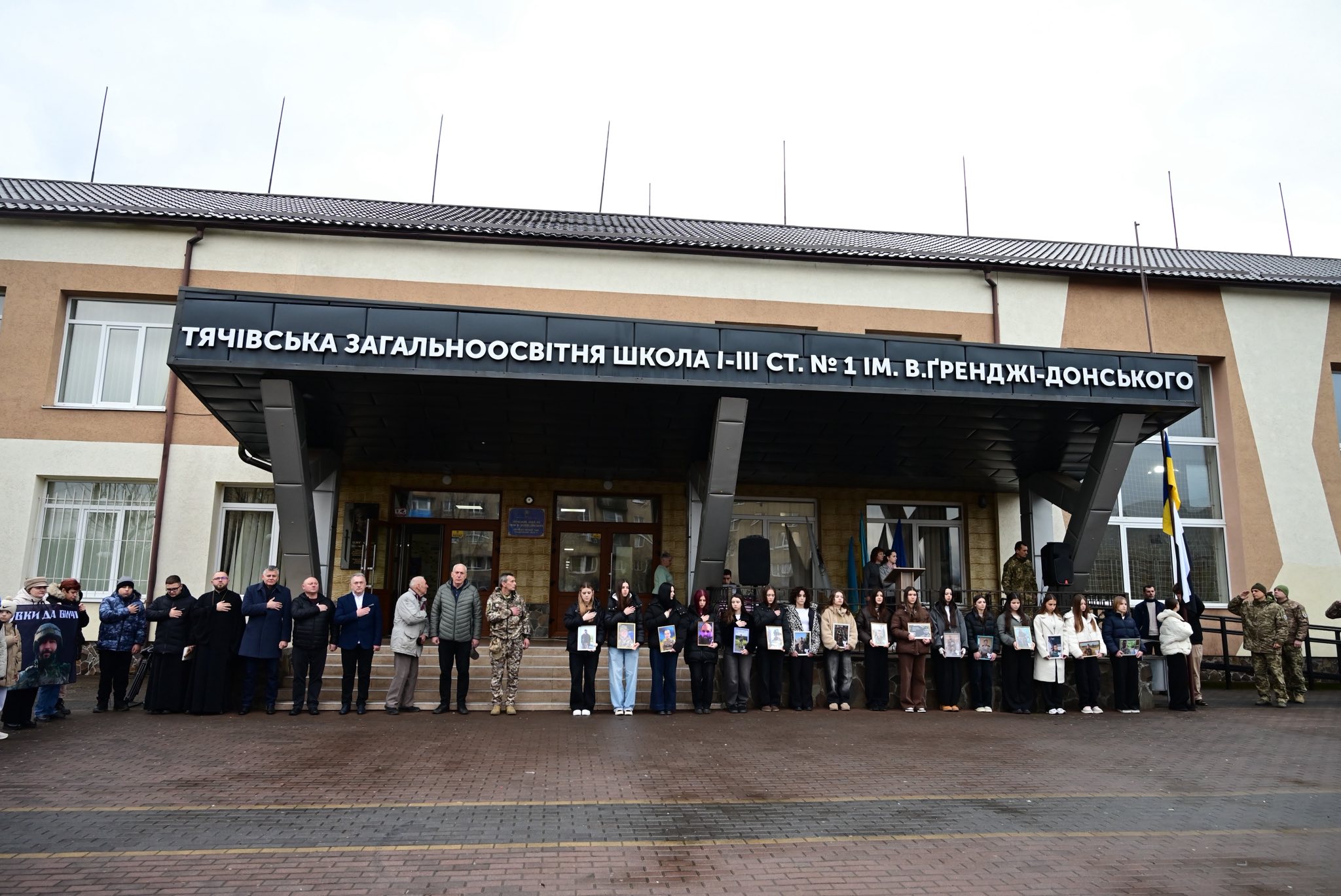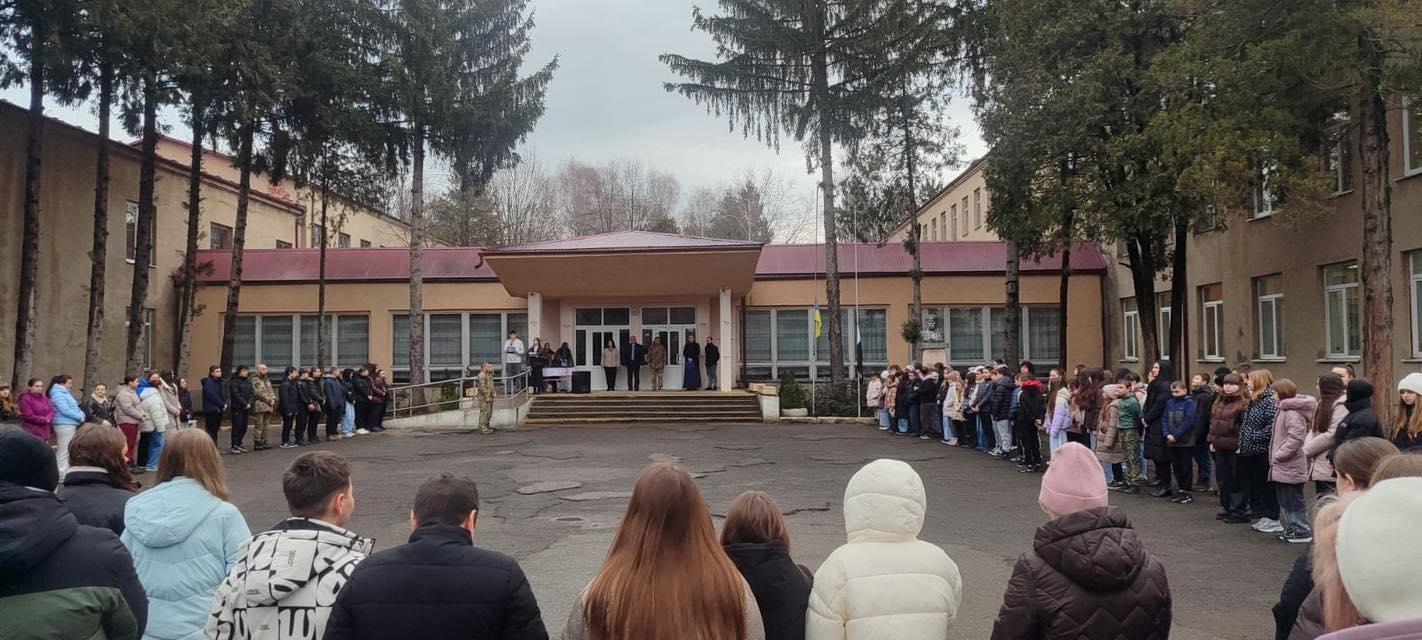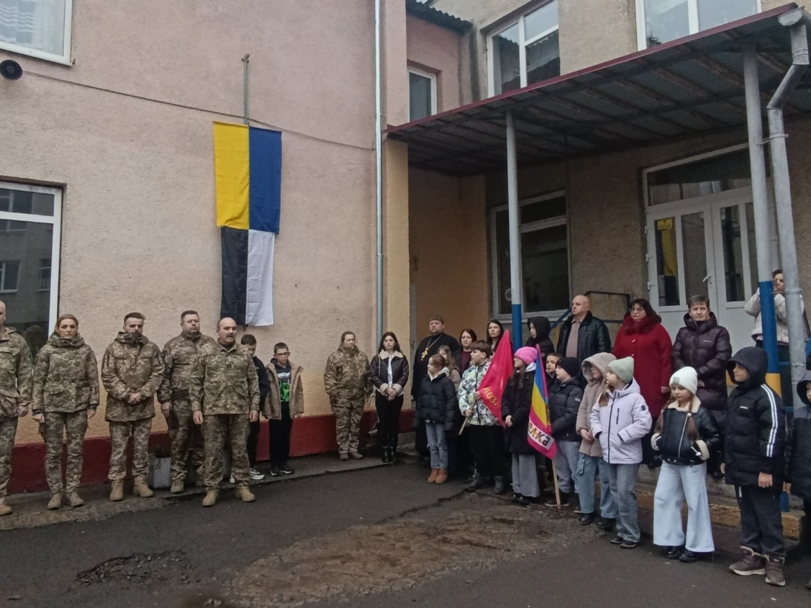 На подвір’ї Тячівського ліцею №1 ім. В. Ґренджі-Донського Прапор Надії урочисто підняли діти учасників бойових дій.