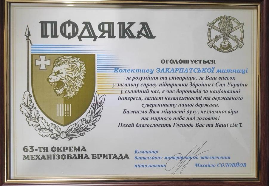 Профспілковий комітет Закарпатської митниці від початку повномасштабної військової агресії росії проти України, на постійній основі надає посильну допомогу різним військовим частинам ЗСУ, благодійним фондам, госпіталям, дитячим будинкам, а також сім’ям воїнів-захисників Вітчизни.