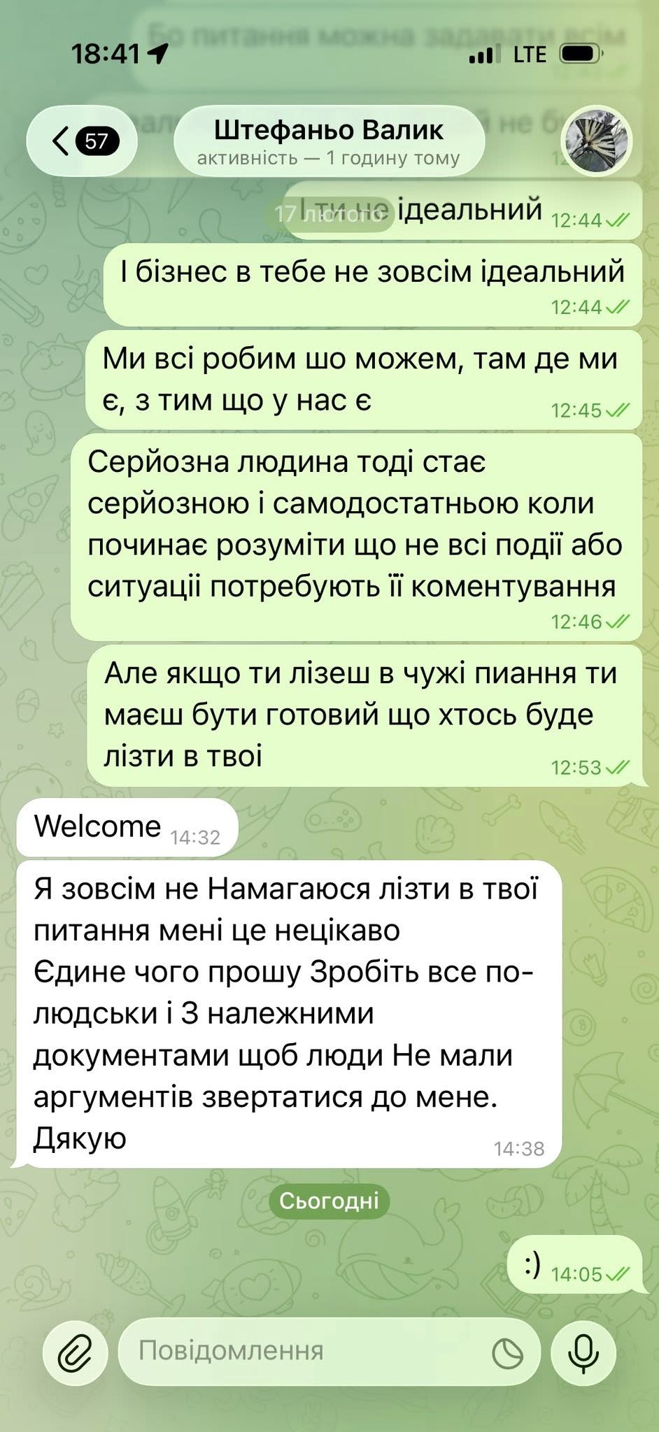 Ось на скрінах мої вчорашні «погрози», обкуреному депутату Штефаньови