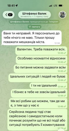 Стосовно депутата Штефаня : по ньому БЕБ порушив кримінальне провадження по ухиленню від сплати податків на 14 мільонів гривень. Один із «смотрящих» за міськрадою пообіцяв йому врегулювати це питання, якщо він буде орієнтований в голосуваннях на нього ( ось ця публічна і офіційна заява про погрози з мого боку і є частиною такого орієнтуєвання