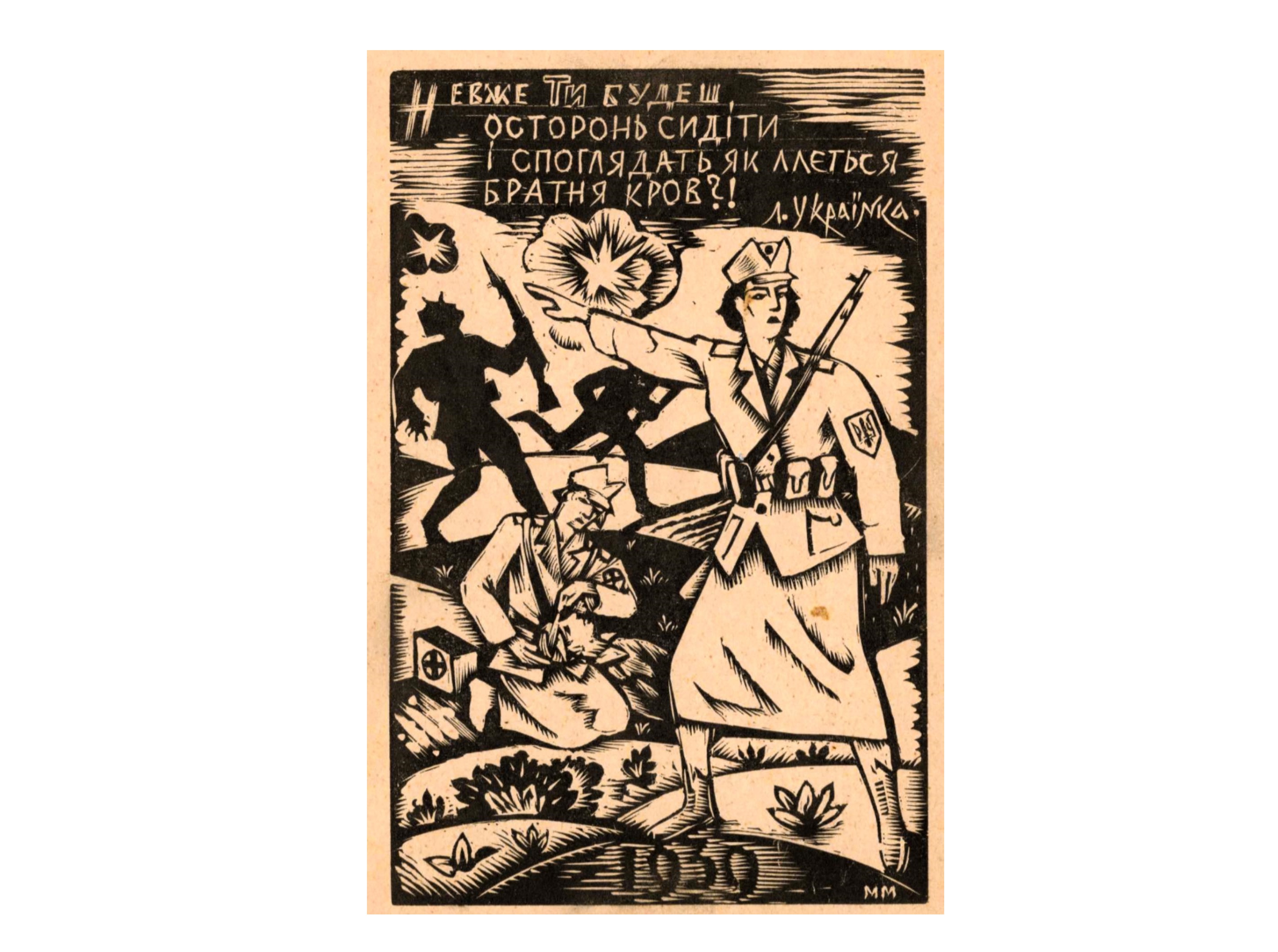 Прапор ОУН є блакитний, із золотим тризубом з мечем у центрі полотнища. На переважній більшості агітаційних плакатів та листівок бачимо тризуб. Автором більшості матеріалів був керівник мистецької референтури КС Михайло Михалевич. Його роботи часто підписані ініціалами «ММ».