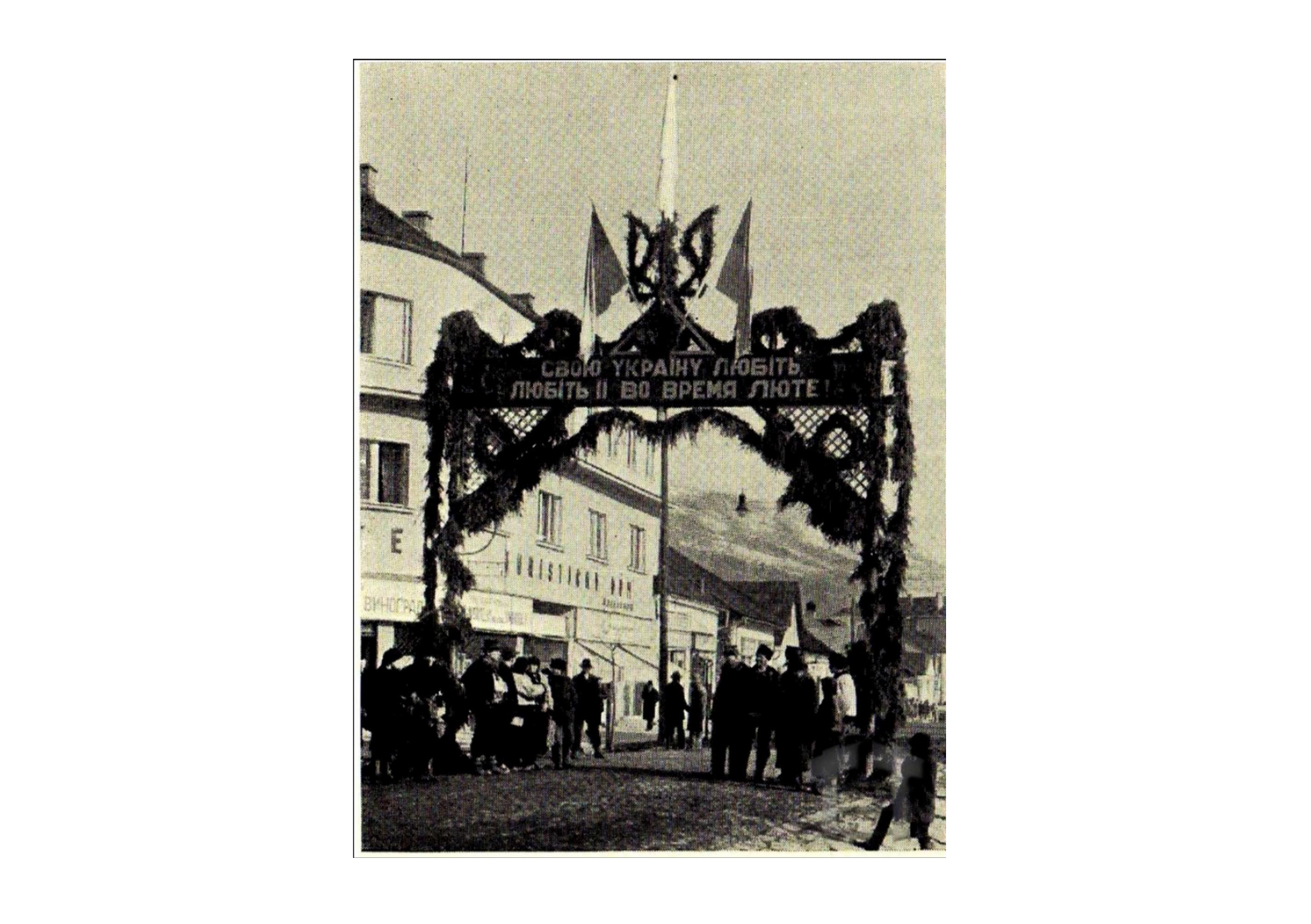 У переддень виборів до сойму, які відбулися 12 лютого 1939 року, майже у всіх великих містах споруджували дерев’яні брами, прикрашені хвойними гілками. У верхів’ї ставили тризуби, зв’язані з хвої. «Віче звичайно затягалося аж до вечора. У всіх вікнах кожної хатини розсвітилися свічки, а на стінах виднілися національні прапорці, тризуби і портрети прем'єр-міністра о. д-ра Августина Волошина…. Вже від ранніх годин будували вітальні брами для кандидатів на послів чи для інших важливих промовців. На деяких місцях ті брами виглядали дуже «парадно», звичайно окрашені тризубами і великими надписами різних гасел» – ось так про використання символіки згадує у своїй книзі «Сойм Карпатської України» Степан Росоха, яка була видана у 1949 році у Венніпегу (Канада).