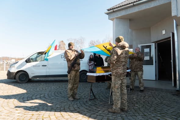 Попрощатися з Героєм прийшли його рідні, знайомі та небайдужі мукачівці. Чоловік був солдатом, служив у військовій частині А4123.