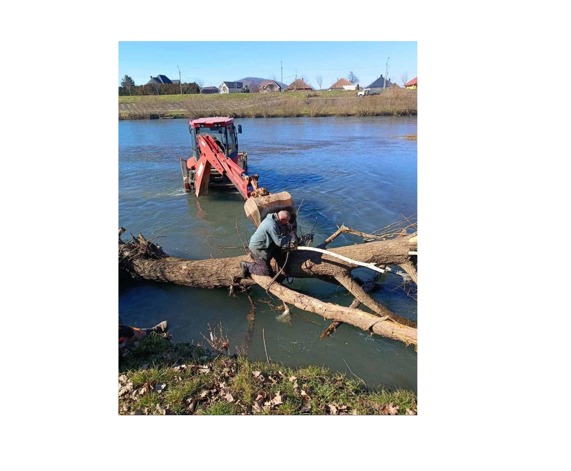 В Мукачеві на дамбі річки Латориця здійснювали розкряжування дерев, принесених течією