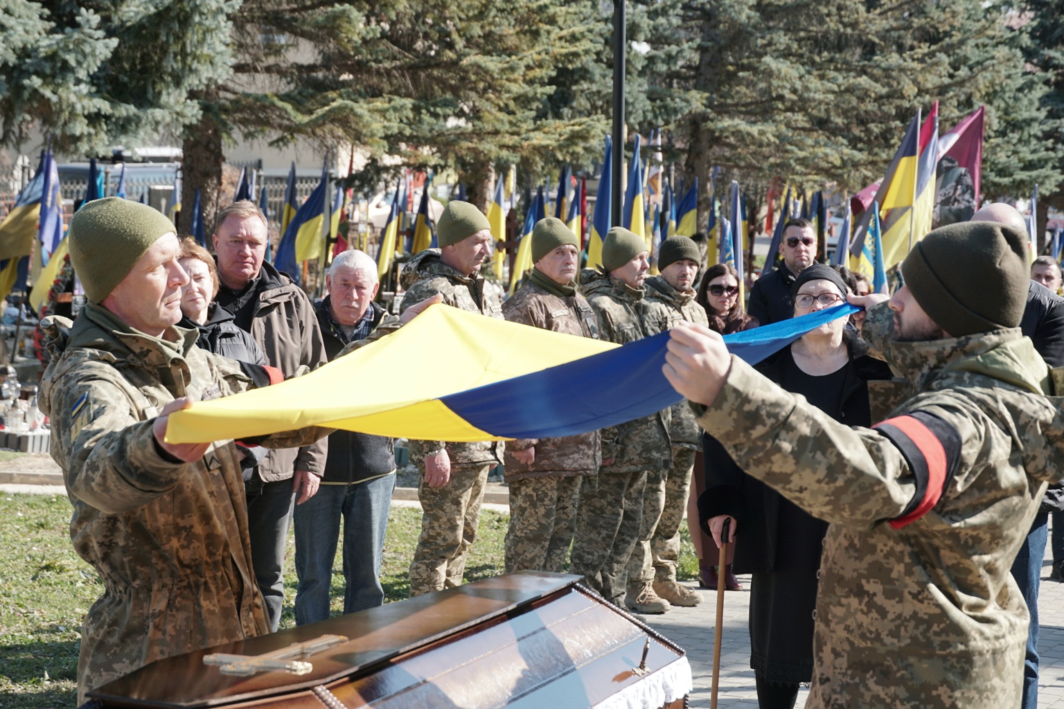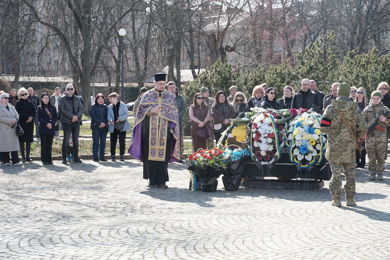 Чин похорону відбувся на площі Народній. Віддати останню шану полеглому прийшли рідні й близькі, військові, мешканці міста, міський голова Ужгорода Богдан Андріїв.