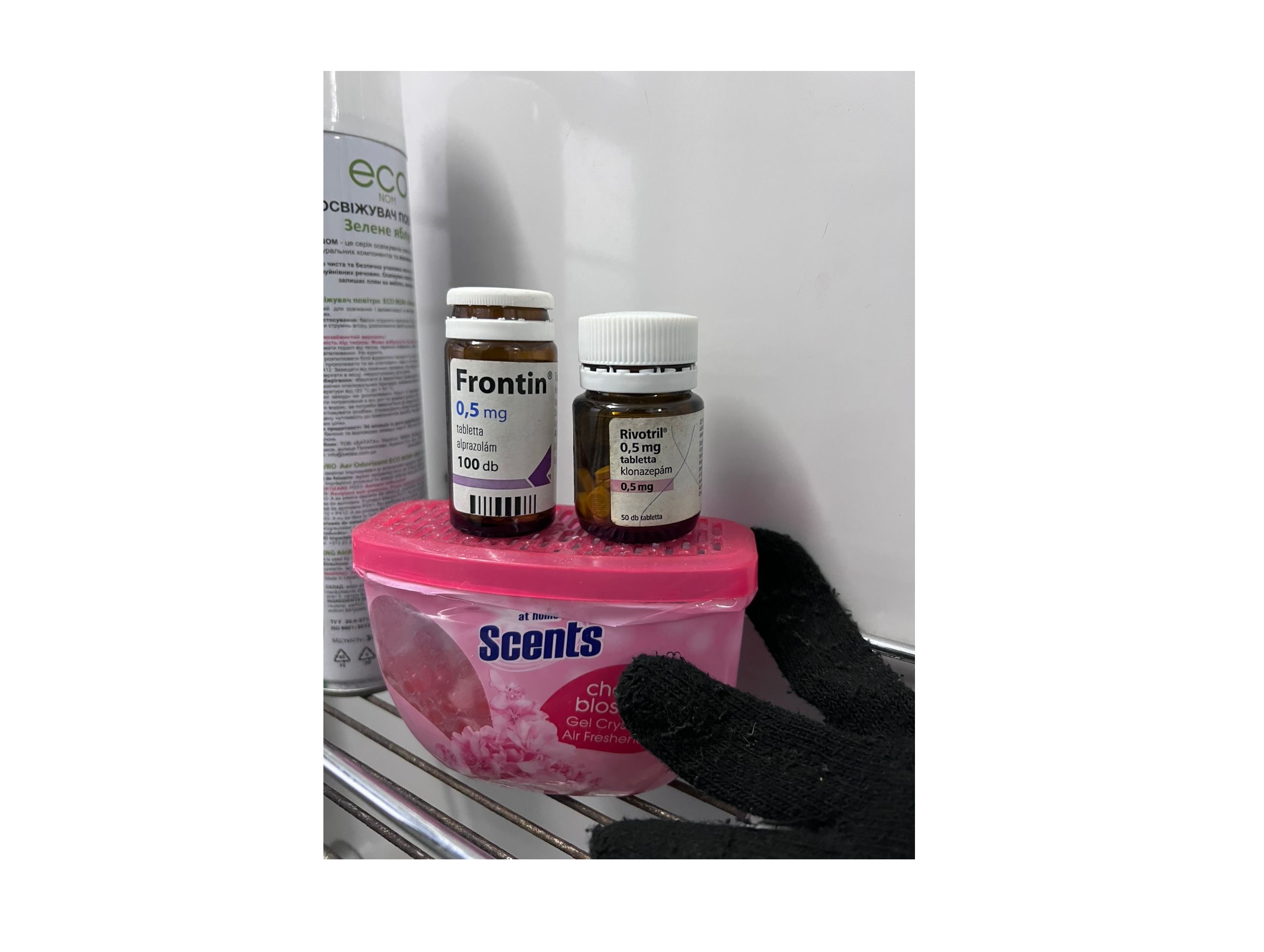 Під час огляду потягу сполученням «Будапешт – Чоп» прикордонний наряд відділення «Чоп» спільно зі спеціально-оглядовою групою Чопського загону та митниками виявив у вбиральні пасажирського вагону два флакони з медикаментами, що містять психотропні речовини «Alprazolam» і «Klonazepam». Намагаючись приховано від контролю перемістити їх на територію України, зловмисники помістили флакони у сміттєвий бак.