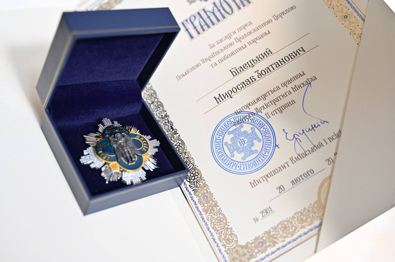 Із рук владики Варсонофія голова Закарпатської ОВА Мирослав Білецький одержав Орден Архистратига Михаїла ІІ ступеня – відзнаку Православної Церкви України, присвоєну митрополитом Київським і всієї України Епіфанієм.
