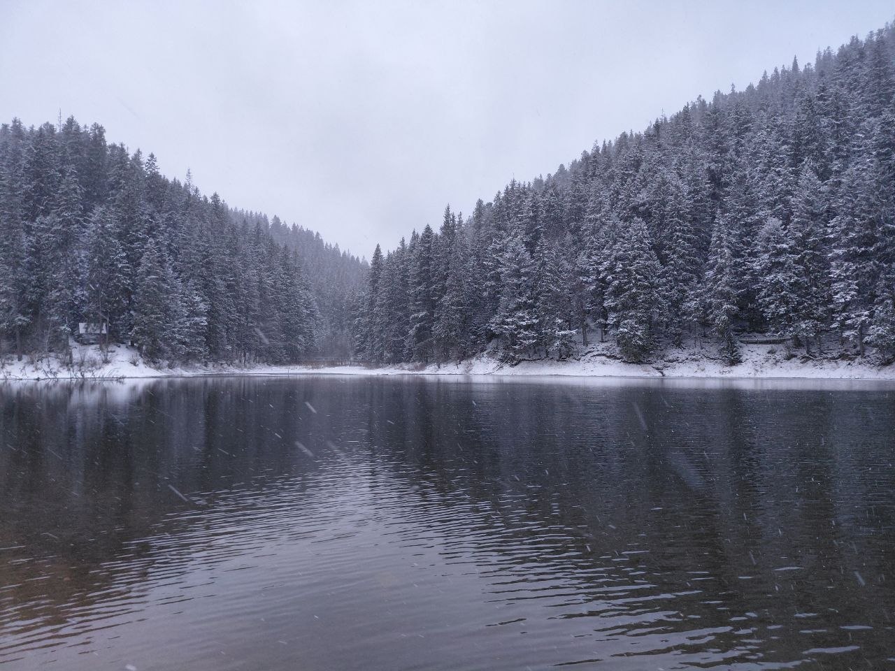 То ж зараз — унікальний час для того, щоб зафіксувати рідкісне поєднання вільної від криги води та засніжених смерек.