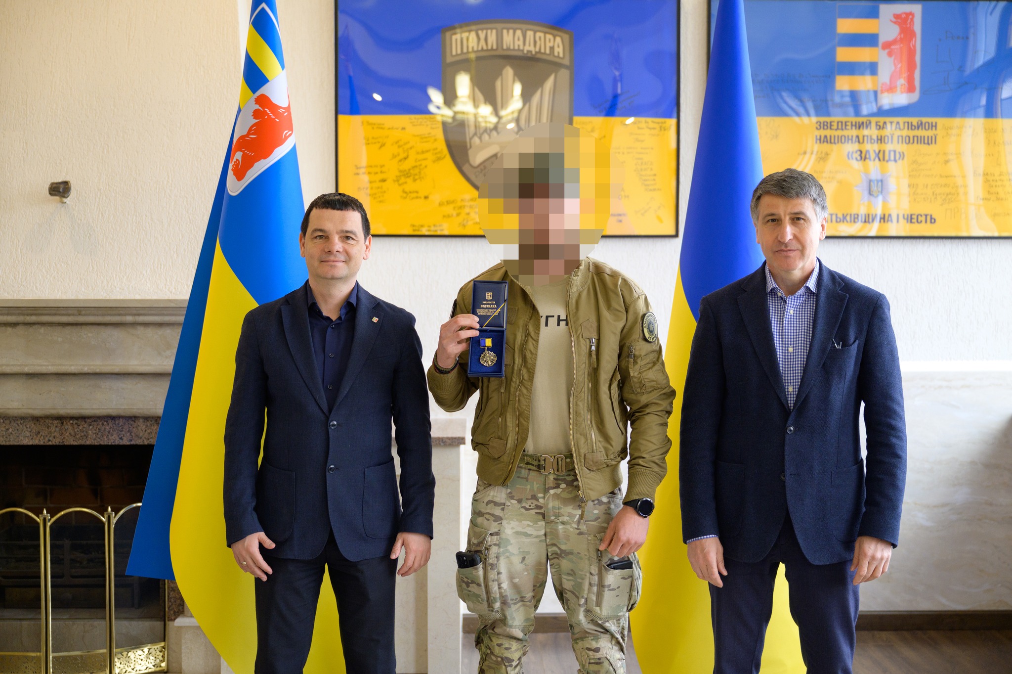 Справжньому патріоту України, який з перших днів війни боронить нашу державу, проявив під час виконання бойових завдань у найгарячіших точках мужність і відвагу, нашому земляку – закарпатцю, військовослужбовцю із спецпідрозділу «Стугна» у складі спецпідрозділу «Тимура» ГУР України на позивний «Файтер», вручили Спільну відзнаку Закарпатської обласної ради та обласної державної адміністрації – нагрудний знак «Честь і доблесть Закарпаття».