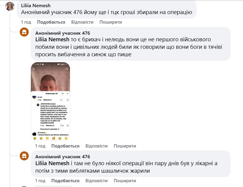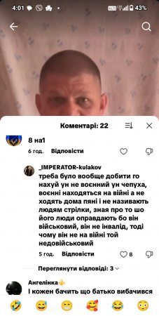 "Ви бляді ублюдки єбучі , Ви знали що то воїн , який пройшов ад , і заслуговує поваги від всіх .Я по відіо бачив які ви садісти , твій смаркач бив наповал , насмерть бітов . Як це можна розцінювати , ви хотіли воїна вбити , або покалічити" - ще один обурливий коментар під дописом.