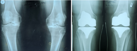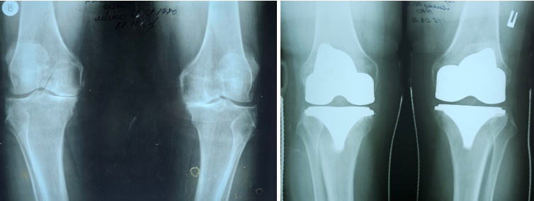 До Закарпатської обласної клінічної лікарні пацієнта госпіталізували з діагонозом «Двобічний гонартроз IV ступеня з варусною деформацією обох колінних суглобів, стійким больовим синдромоммом та згинально- розгинальною контрактурою середнього ступеню».