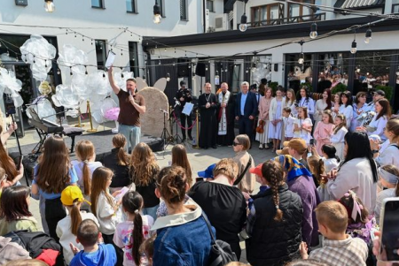 Отець Михайло благословив учасників свята і виступив перед публікою з проповіддю, розповівши історію виникнення та значення писанки як символу Великодня. Священник підкреслив важливість свята Пасхи і побажав усім миру і радості у ці дні і повсякчас.