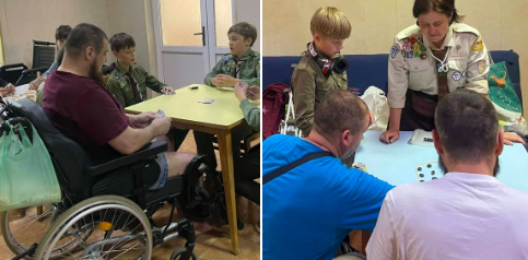 Окрім гостинців, пластуни провели час із бійцями за іграми, допомігши їм відволіктися від лікарняних буднів.