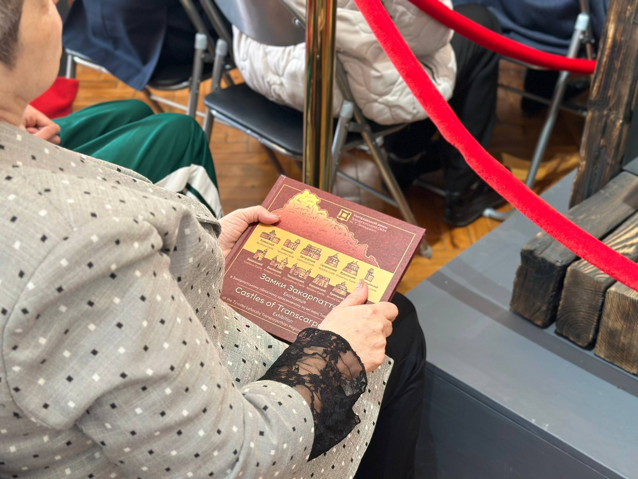 Про це та про зміст видання, в якому подано опис експозиції «Замки Закарпаття», розміщеної в Закарпатському обласному краєзнавчому музеї імені Тиводара Легоцького в 2025 році, розповіла й авторка концепції експозиції – Ольга Шумовська. Вона провела слайдову презентацію альбому крізь інформацію про історію 12 найвідоміших замків на території сучасної Закарпатської області України, їхні архітектурні описи, макети, схеми, археологічні знахідки, реконструкції зброї та обладунків, портрети відомих власників замків і представників тогочасної еліти, їхні родинні герби, інші цікаві експонати, інклюзивний інфобокс. Вона інформувала про ідею та процес створення експозиції «Замки Закарпаття», яка задумувалася з метою якнайширшої популяризації матеріальної культури та історії регіону, залучення відвідувачів до ознайомлення з багатою історико-культурною спадщиною через унікальні архітектурні пам’ятки, що розкинулися на всій території сучасного Закарпаття. Видання ілюструє місце і роль замкових споруд у історико-культурному контексті, а їх архітектурні особливості, функціональне призначення, а також культурний вплив – еволюцію регіонального соціуму в минулому. Ольга Шумовська акцентувала увагу й на тому, що експозиція «Замки Закарпаття» також є важливою із декількох аспектів для всіх, хто цікавиться історією та культурною спадщиною: культурного, туристичного, освітнього й економічного. Тому створення експозиції «Замки Закарпаття», як і видання альбому, стало важливою подією для привернення уваги до необхідності збереження цих унікальних пам’яток для майбутніх поколінь.