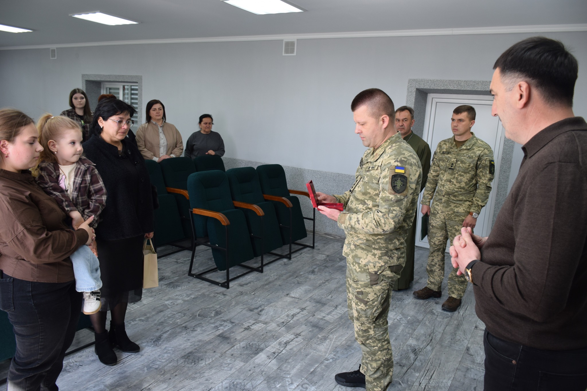 Державну нагороду мамі, дружині та донечці загиблого захисника вручили заступник начальника Мукачівського прикордонного загону полковник Олександр Гладкий та Голова Горондівської територіальної громади Туряниця Іван Іванович.