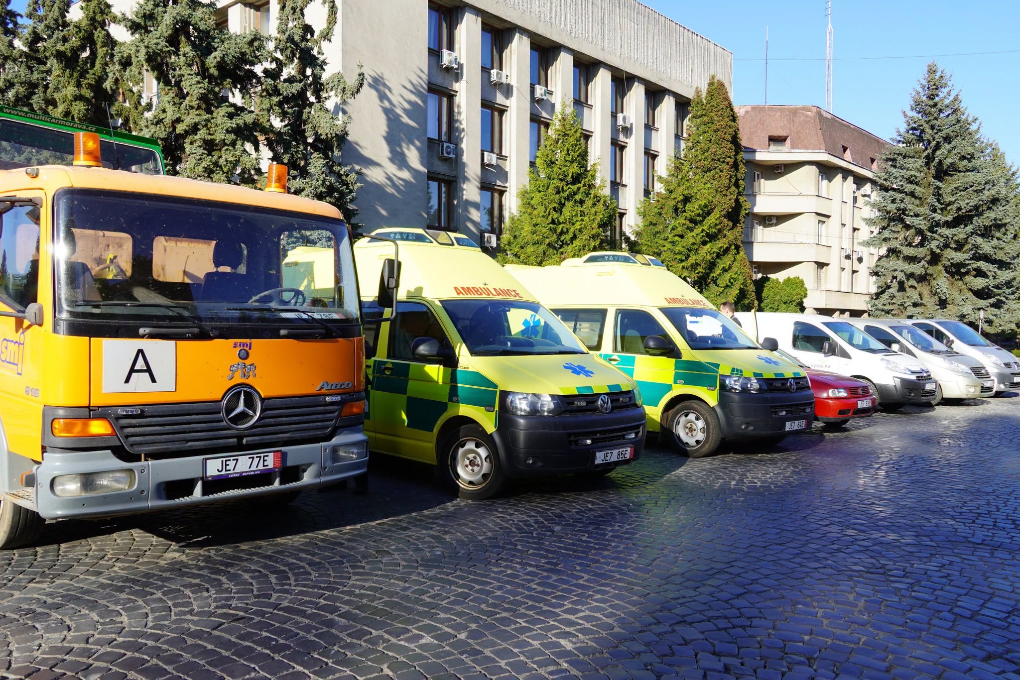 Вантажівки Mercedes-Benz Atego та Fumo M30A, генератор, порошкові вогнегасники, автомобіль для Центру надання соціальних та реабілітаційних послуг для дітей та осіб з інвалідністю «Дорога життя» передали сьогодні із Краю Височина. Делегацію, яка з робочим візитом приїхала на Закарпаття, очолив заступник гетьмана краю, заступник міського голови Їглави – міста-побратима Ужгорода – Їржі Покорни.