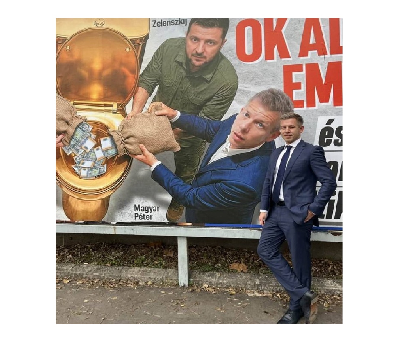 Віктор Орбан розклеїв по Угорщині пропагандистські банери із Володимиром Зеленським та Петером Мадяром. Лідер угорської опозиції не став ігнорувати ці нападки й вирішив стильно попозувати перед рекламою на зло прем'єр-міністру Угорщини Віктору Орбану.