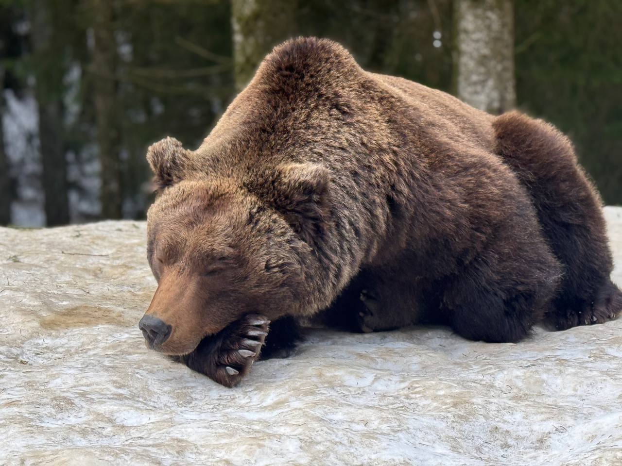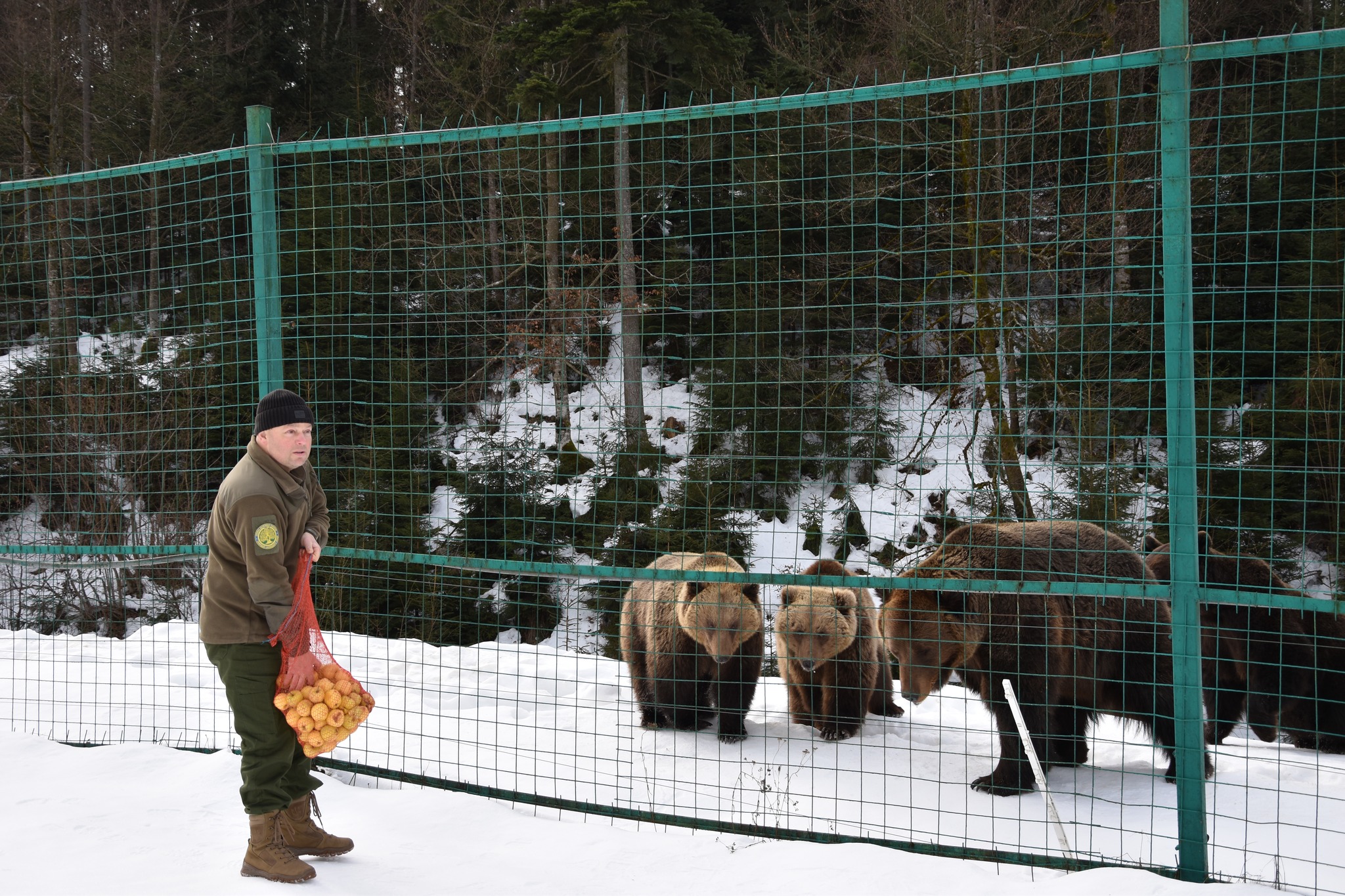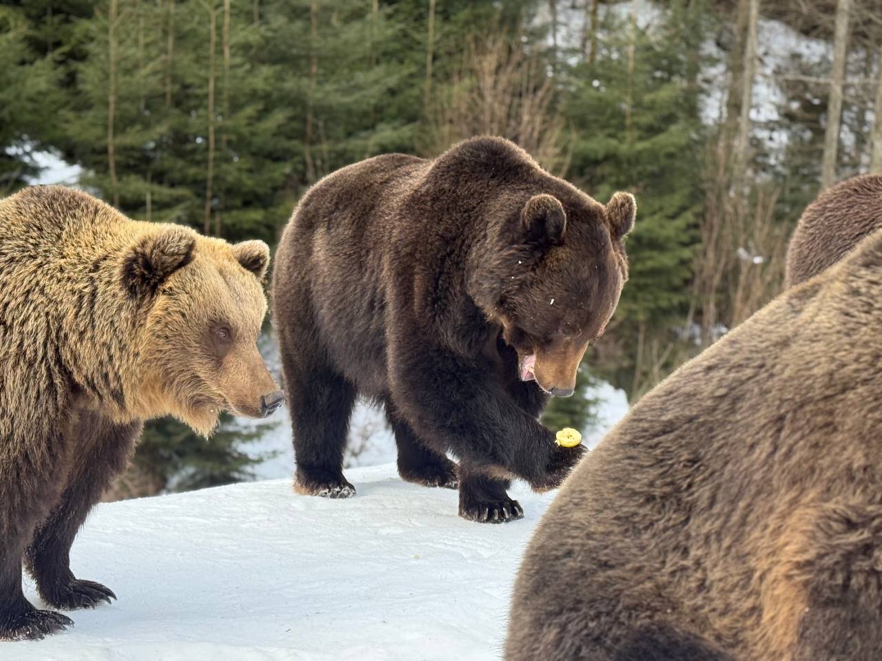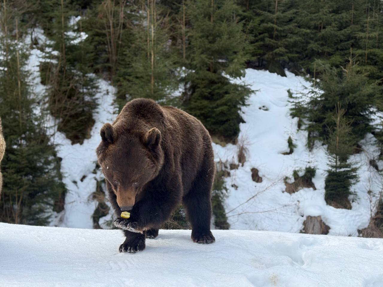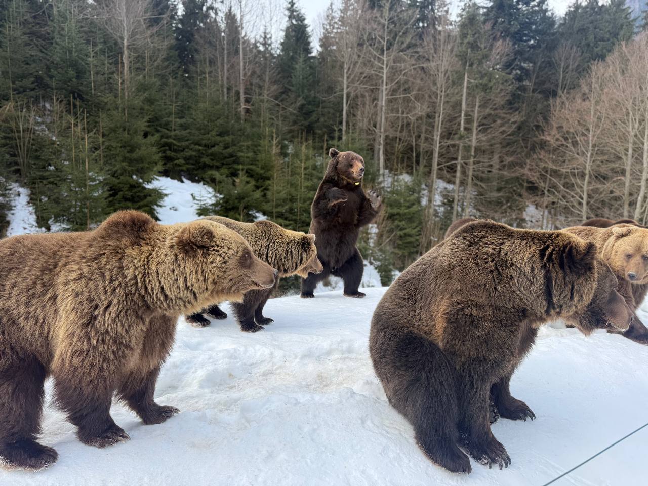 Сьогодні зима ще тримає гори в прохолодних обіймах, однак у Реабілітаційному центрі бурого ведмедя Національного природного парку «Синевир» уже відчувається подих весни. Частина мешканців центру почала поступово виходити зі стану зимової сплячки — цього року вона виявилася коротшою та менш глибокою, ніж зазвичай. Через відносно морозну зиму та часті відлиги, деякі ведмеді не занурилися у тривалий сон, а перебували у стані так званої напівсплячки. Ті особини, які впадали в зимове заціпеніння, час від часу прокидалися у барлогах, реагували на температурні коливання і вже зараз у другій половині лютого почали обережно виходити назовні. Звірівники центру уважно спостерігають за кожним рухом підопічних. Саме у цей період тварини потребують особливої підтримки. Тому фахівці поступово збільшують добову норму кормів. У раціон повертаються зернові суміші, фрукти та інші енергетичні корми. Найцікавіше — спостерігати, як змінюється поведінка тварин. Спочатку вони рухаються повільно, ніби розминають лапи після довгого сну. Хтось грайливо перевертає колоди та крижані брили замерзлого снігу, хтось гріється на сонці, а потім знову повертаються до активного способу життя. Разом із рухливістю повертається і апетит — головна ознака того, що організм набирає нових сил. Працівникам парку вдалося зафіксувати ці перші миті пробудження. Відзняті відеосвітлини передають особливу атмосферу спокою ведмедів, де їхні обережні кроки по снігу говорять про готовність до подальшого активного ритму життя.